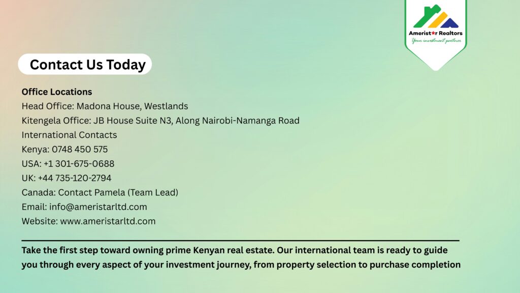 To be the leading real estate company in Kenya, specializing in land and property, recognized for our innovative approach, unparalleled customer experience, and positive impact on the communities we serve.